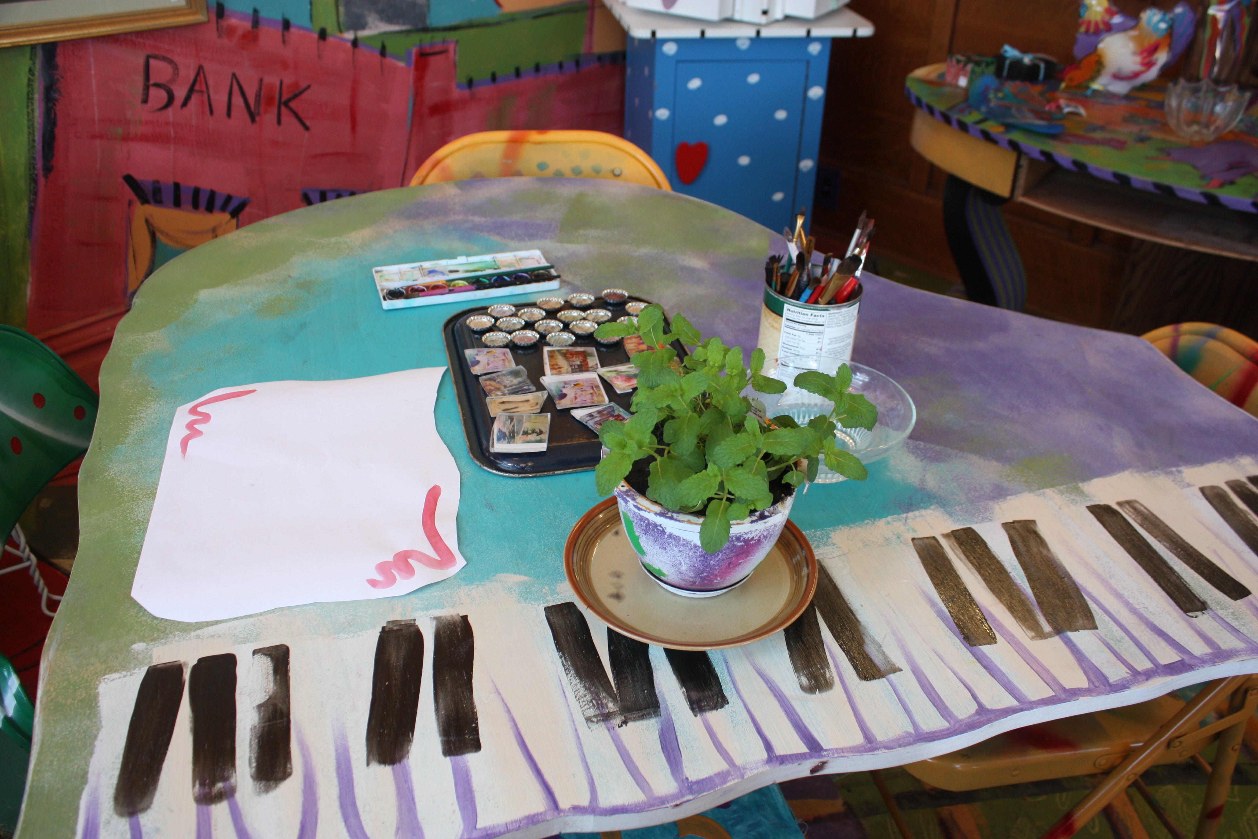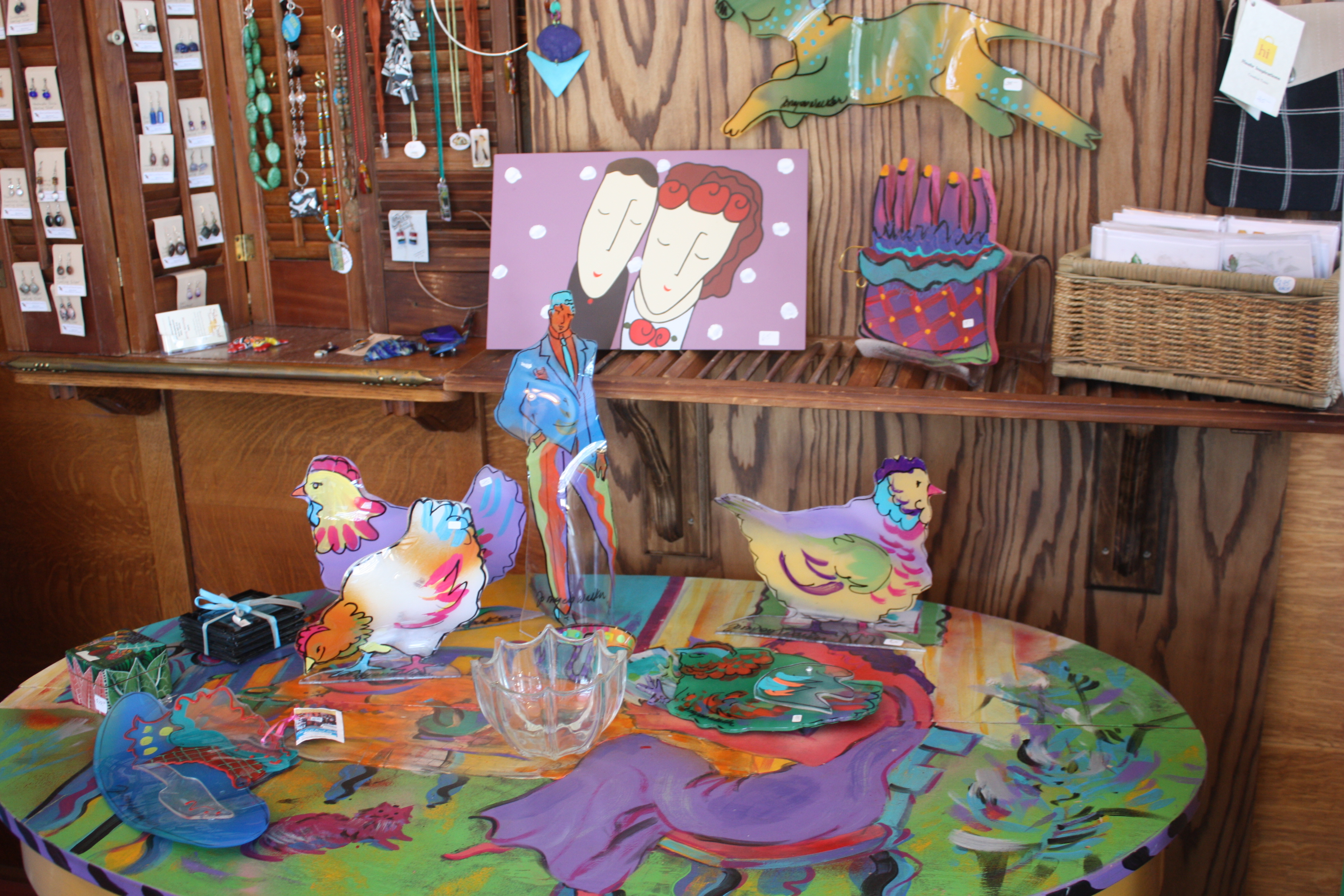 The Left Bank Studio is owned by artist Jo Myers-Walker and features the art of Myers-Walker and five other artists, including Sarah Dorn. Sarah was in the shop on Saturday when I stopped by. She showed me around the shop, which is a former bank building. It’s not large, but it’s filled with wonderful paintings and jewelry and whimsical home decor. Much of it is under $20, and Sarah said that Myers-Walker offers custom designs on request.