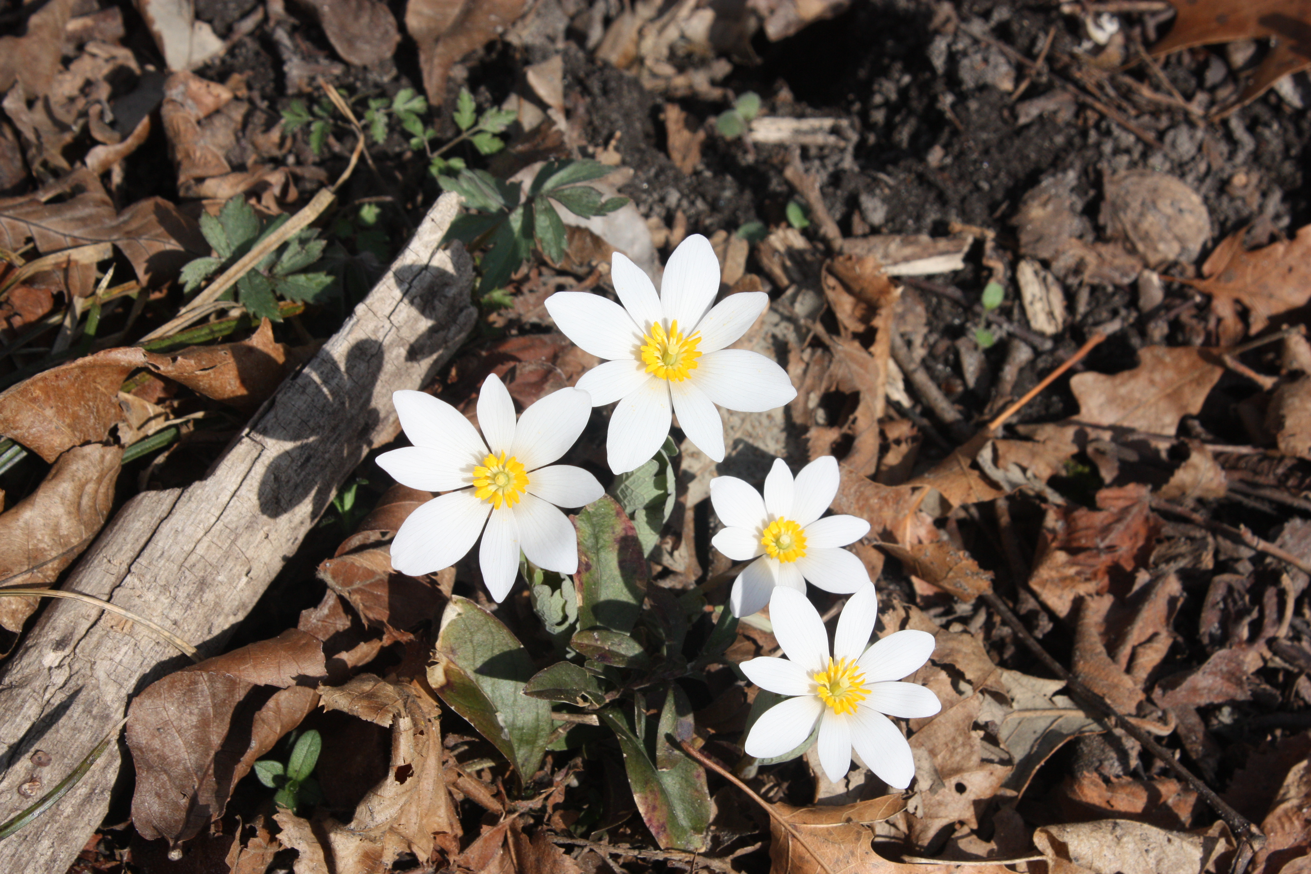 Sure enough, the woods are basically still brown. But look closely at the ground and you’ll see evidence of all kinds of spring flowers starting to pop up. Most are still just bits of green, but there are a few of the earliest bloomers — the shy, small, delicate ones that don’t stay around very long. Blink, and you will miss them.