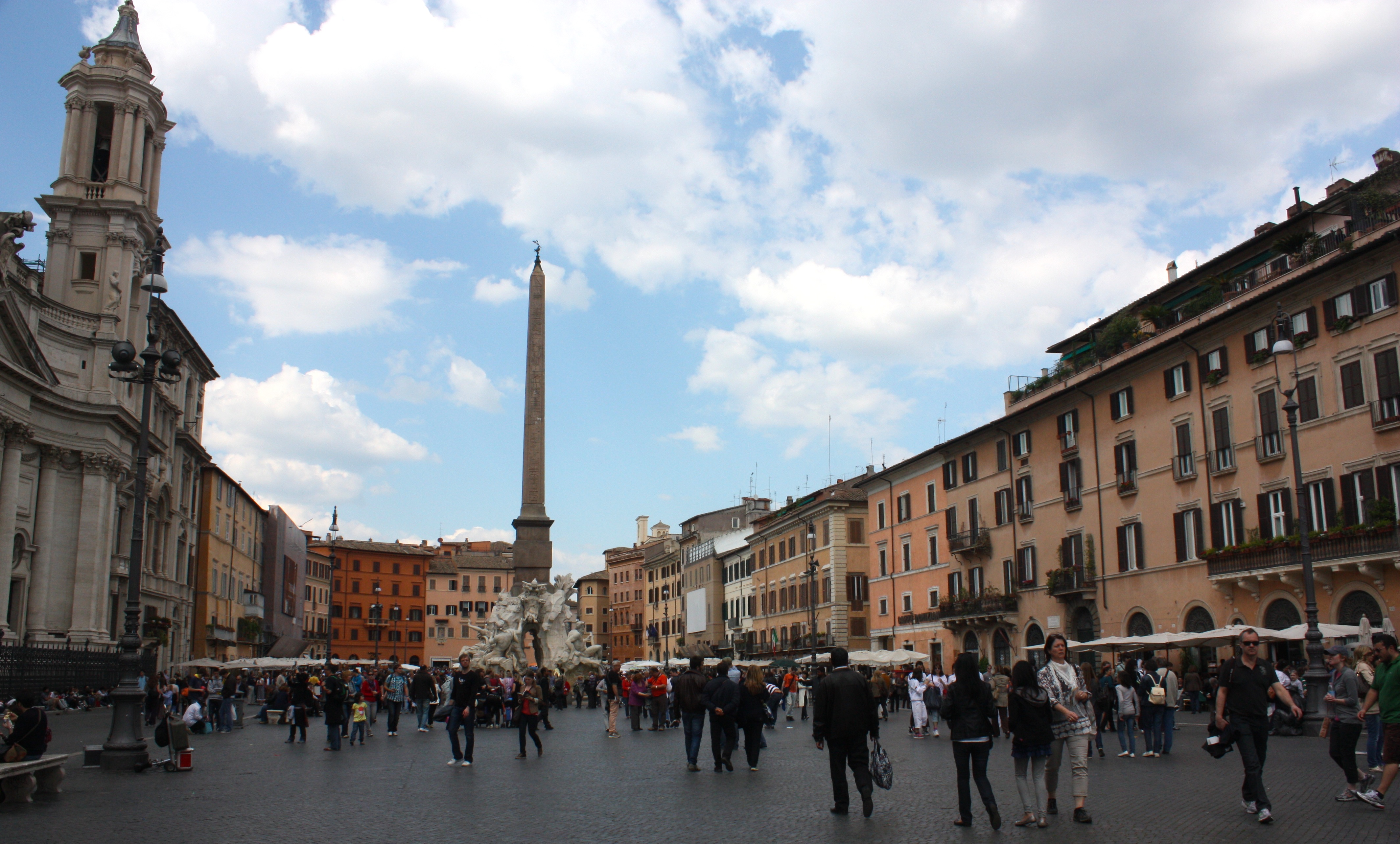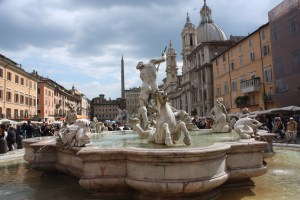 And then we walked to the place that was my favorite last time I was in Rome: The Piazza Navona. It was in full splendor today, with its cafes and artists and spectacular fountains surrounded by lovely architecture on all four sides. It is an absolute treasure, and it reminds me of one of the things I enjoy most about Europe: the city centers. Most cities and even small towns have these plazas or squares around which you’ll find little shops and cafes and places to sit and meet people. In America, we tend to have strip malls.