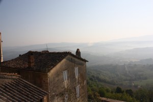 If you’ve never heard of Todi, you’re not alone. Before I got my Portrait of Italy itinerary, I had never heard of it, either. It’s in Umbria, and it’s an ancient city on a hilltop surrounded by lush, fertile ground. The city is small – we figure we can walk pretty much anywhere in about 10 minutes from our central hotel location – but there’s a fair amount of traffic, a good selection of shops and restaurants, churches, banks, historic sites, and the like. Some of the city’s history dates back to the 1st century BC. So it’s a pretty cool place to be.