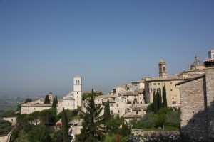 Today we visited Assisi and I learned that it’s much more than the city of St. Francis. The San Francesco Basilica is obviously a huge attraction here, as is the Basilica Di Santa Chiara (St. Clare). Both churches are lovely and contain frescoes and statues, and they feature Gothic architecture from the 1200s.