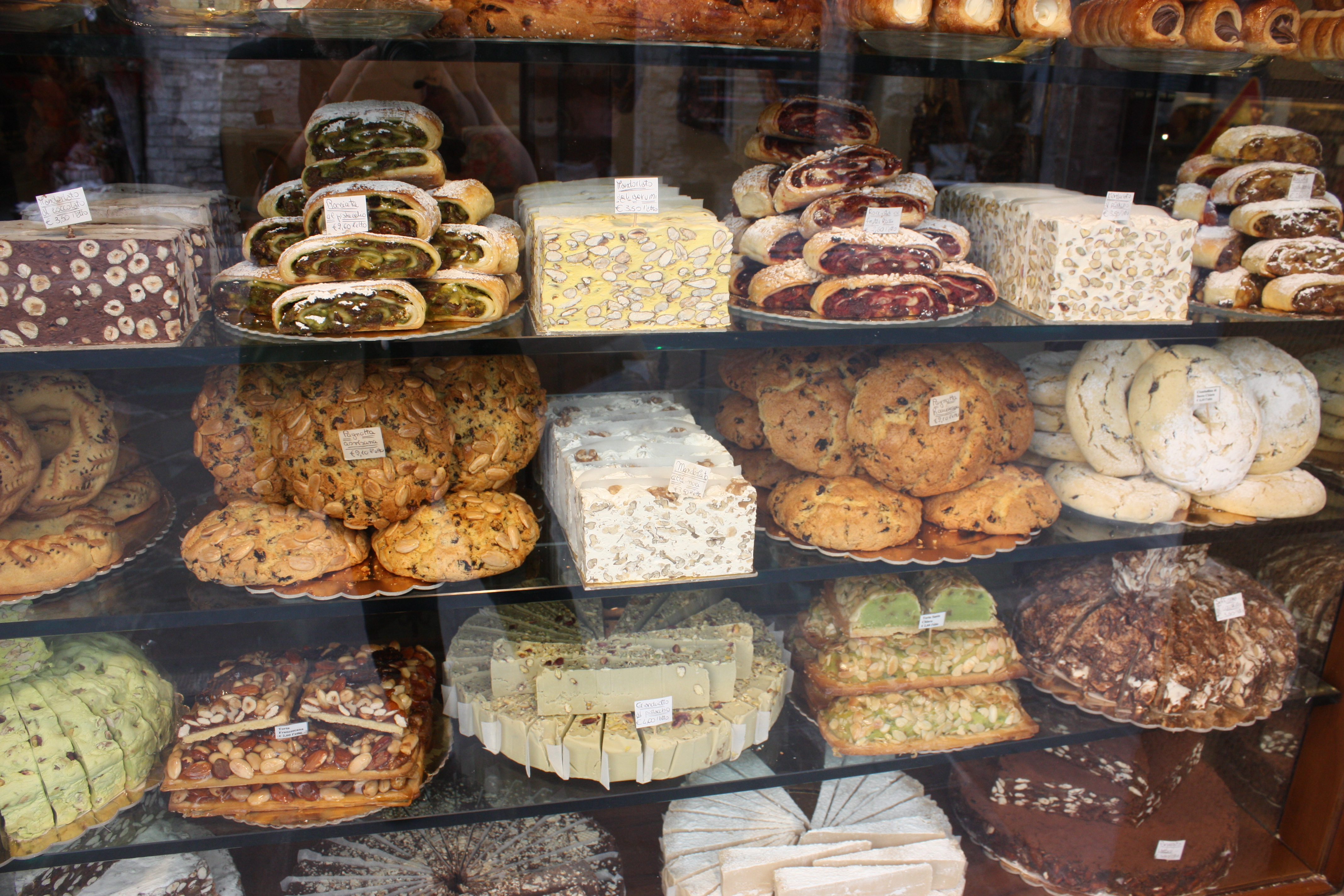 It’s a hilly city, not so different from the other towns we’ve visited in this region (Orvieto, Todi). I couldn’t find this in the literature, but I’m pretty sure Assisi is known as the Italian city that has the highest gelato cafes per capita. Literally, they are next to each other all up and down the streets. Also, there are bakeries like I haven’t seen since I’ve been to Italy. I took pictures of the windows and went into a few of them. They are totally overwhelming. I managed to choose just one thing: a pistachio cannoli. I really wanted a bite of everything.