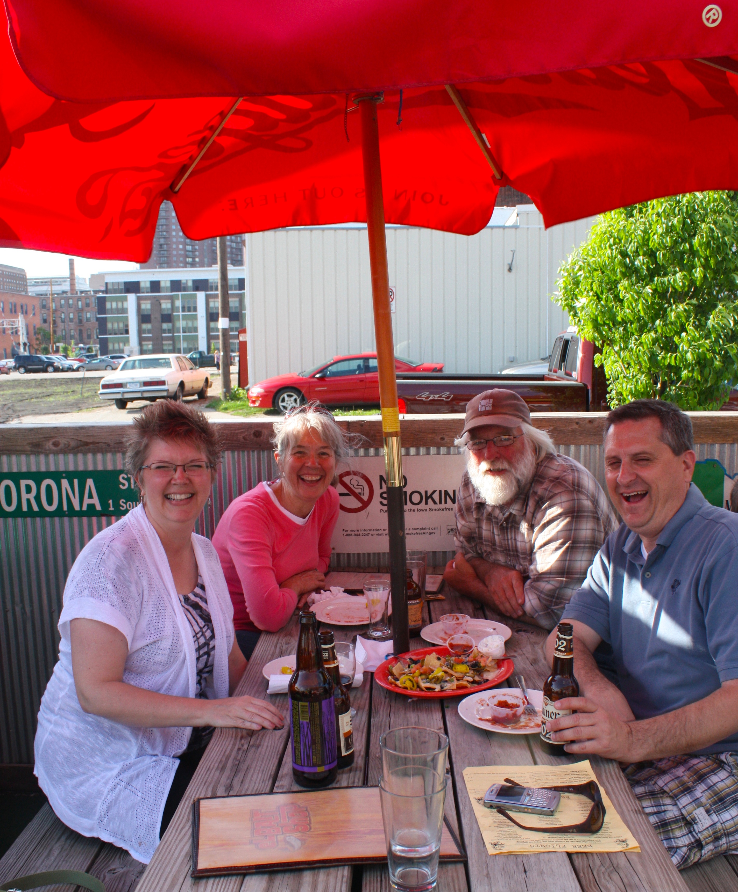 When we arrived downtown, we parked our car and walked around the corner to the festival area, only to be smacked with the reality of just how crowded one block could be. People were packed inside the festival area like sardines, and the line to get in was a half-block long. I immediately called our friends to ask if they were already inside (in which case we’d brave the crowd and meet them there) or if they hadn’t made it there yet (in which case I would suggest we bail). Turns out they were about 3 minutes behind us, so we stood and assessed the situation. Ultimately, we decided to spend the $80 that it would cost for 4 of us to enter the festival and go someplace where we could sit down and have a few slightly more civilized beers.