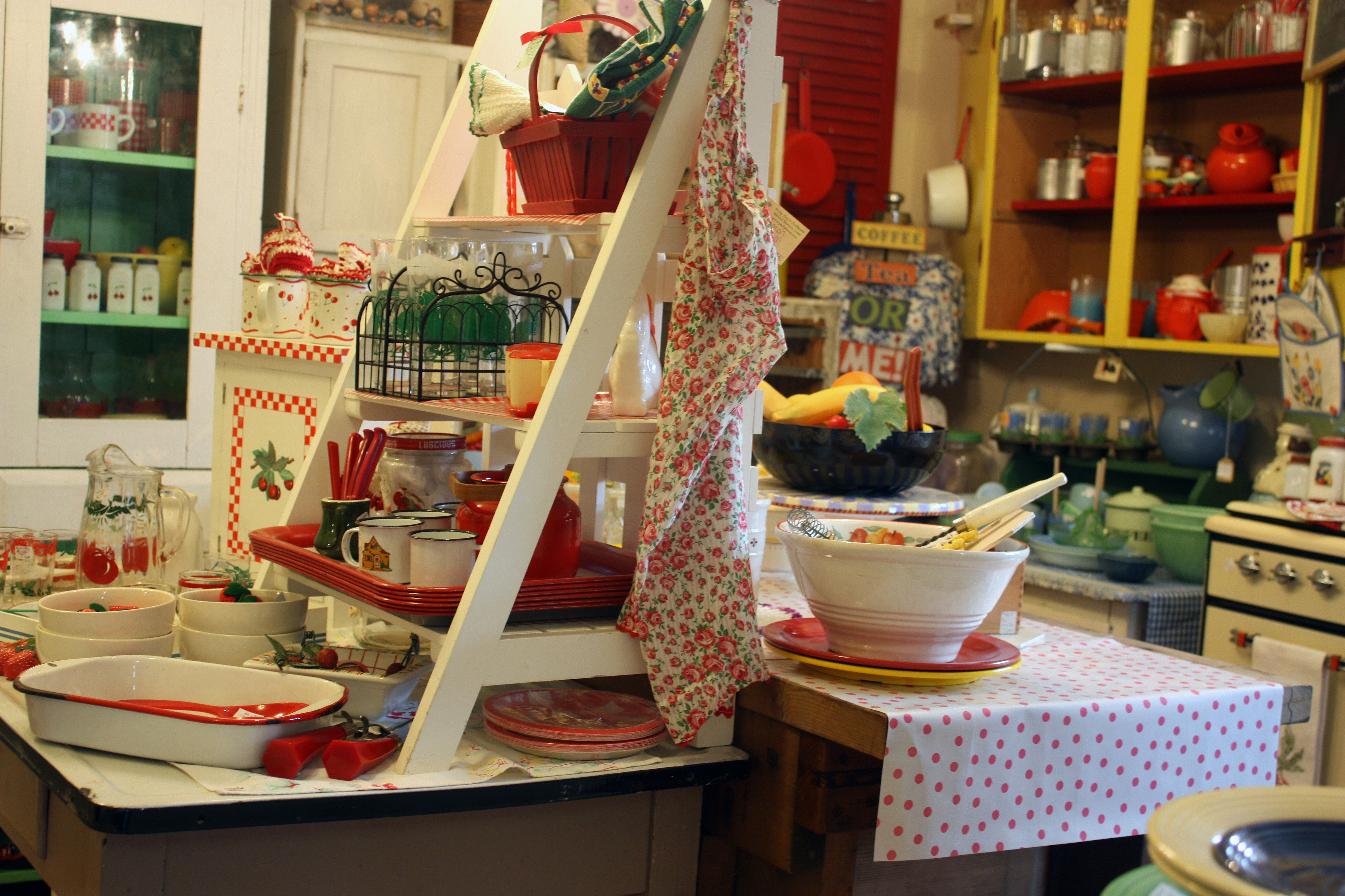 Down the street is Polly Ann’s Antiques – a shop filled with one adorable room after another. I could have spent hours in Polly Ann’s. I especially loved the frilly, Victorian-styled bedrooms, the bright vintage kitchen, and the many other themed rooms filled with fun one-of-a-kind finds. I bought a small black-and-white tin for my bathroom.