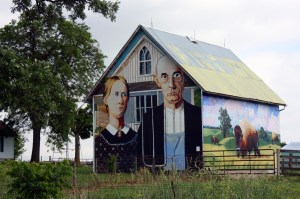 And right next to the park entrance, I spotted a small barn painted with a reproduction of American Gothic (and other scenes). It was painted by artist Mark Benesh in 2008. It’s really quite impressive, and a nice way to launch the scenic (if you don’t mind the road construction on Hwy. 30) two-hour drive back to Ames.