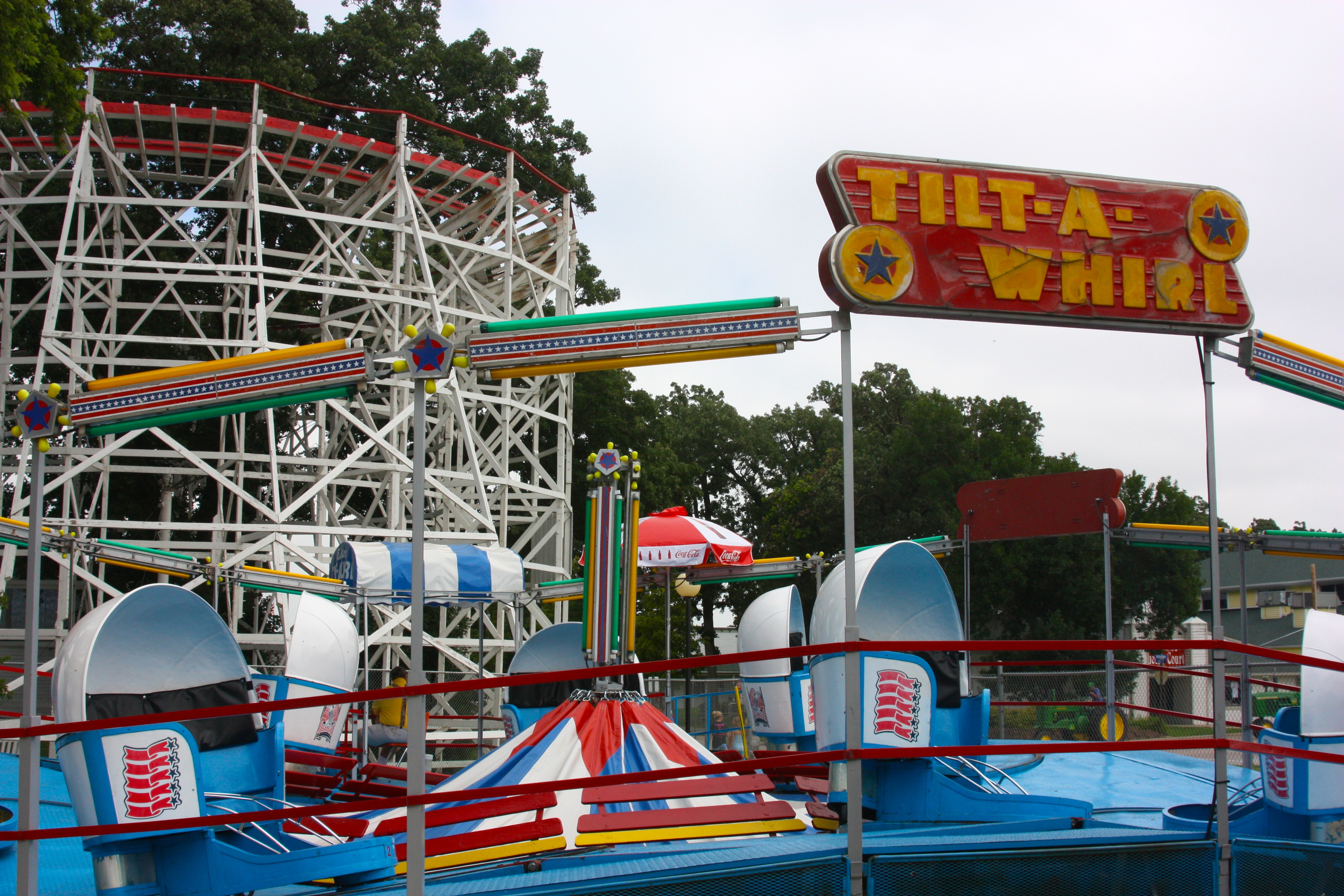 Inside, the park was pretty dead when I first walked in. Lots of rides had no riders on them yet, and the teenage boys running the rides looked bored out of their minds. I figured I should ride the “Legend” (built in 1927 and billed as the 13th oldest wooden roller coaster in the U.S.) before things started getting busy.