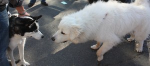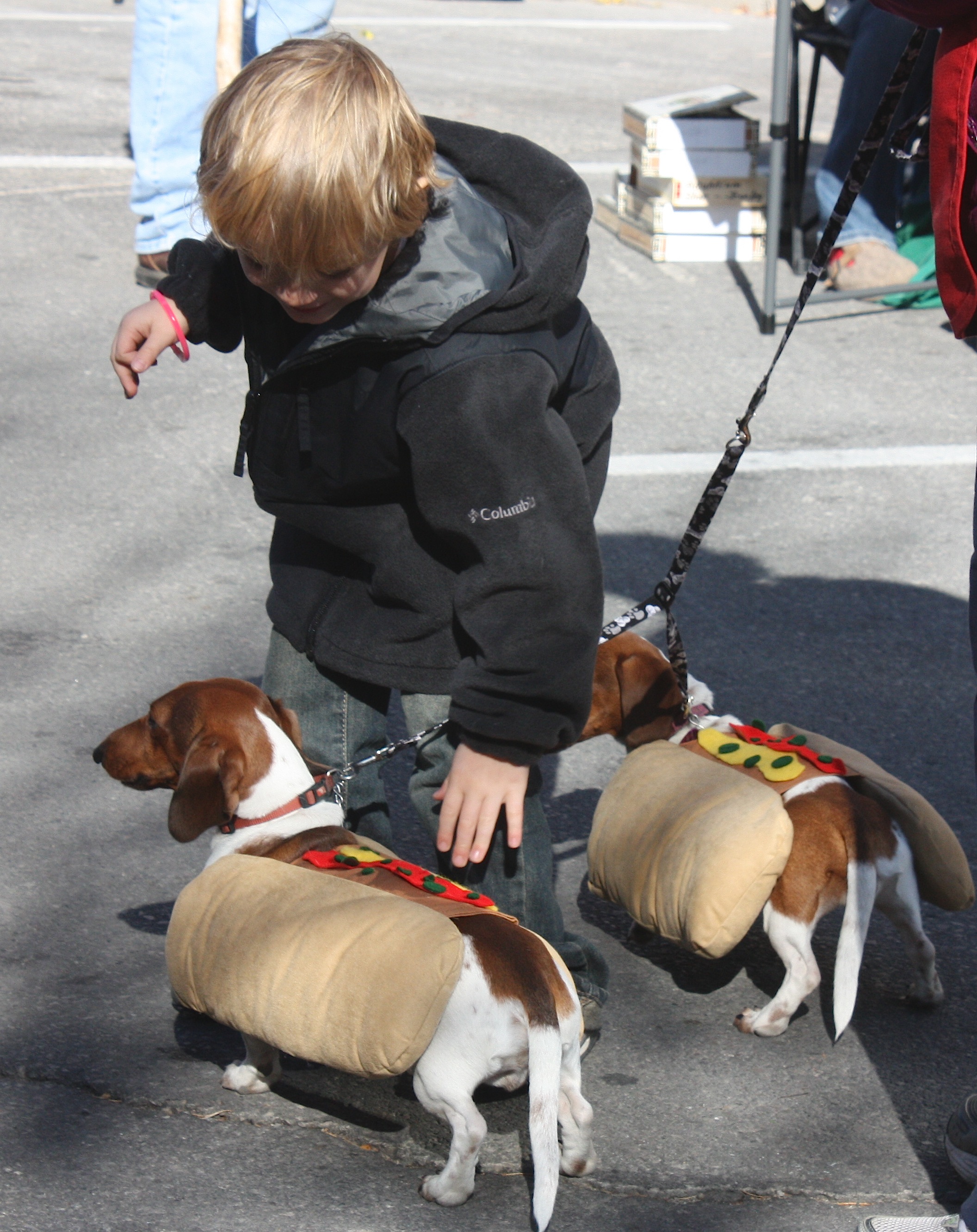 Dogs were dressed as hotdogs, bears, insects, dinosaurs, ballerinas, cowboys, and Santa Claus. A few, apparently too dignified (or too large) for such nonsense wore bandannas around their necks or no costumes at all.