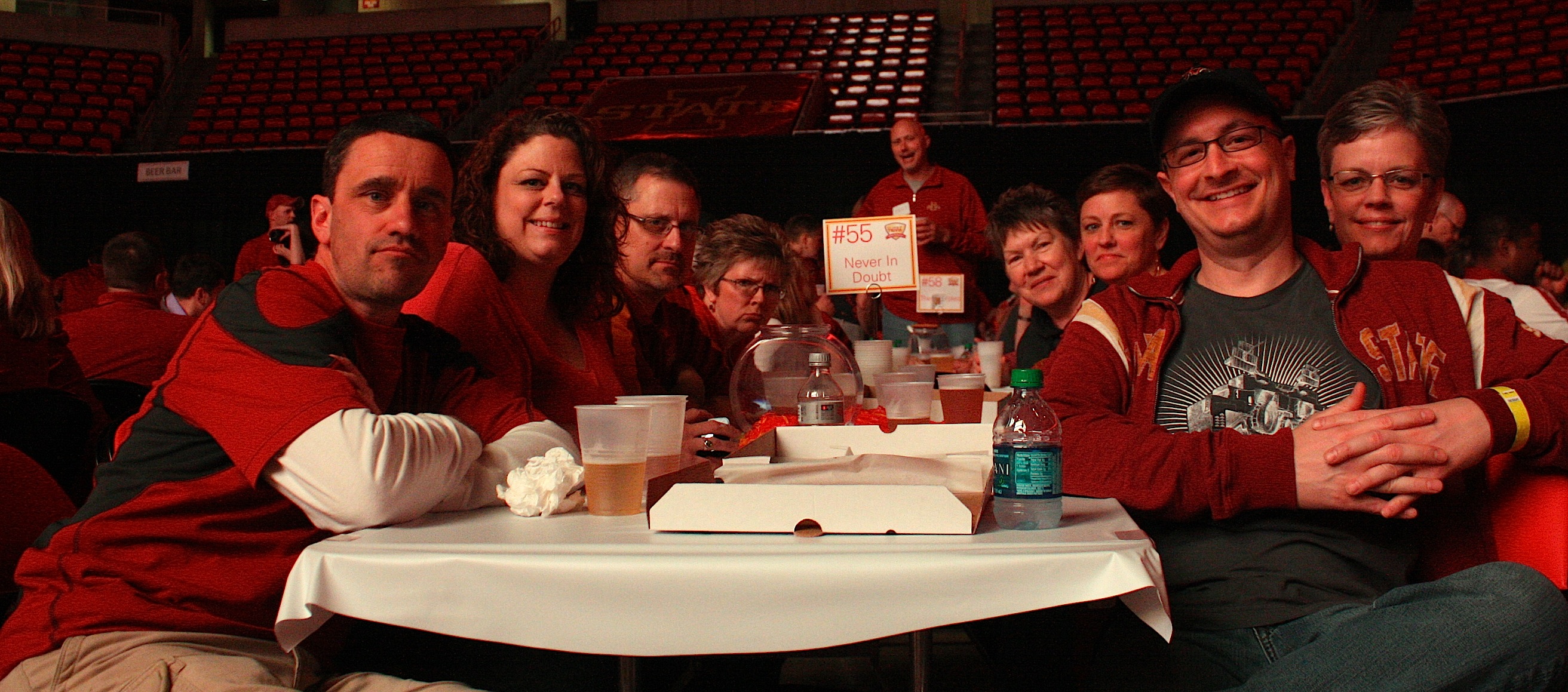 That was five years ago. Our team — made up of the Orths, Dawn Taylor, Mary Taylor, Anne Taylor, and Chris Limburg — has more or less stayed intact, and we’ve all become good friends. We get together socially now and then, and we always have a party before the trivia contest where we consume some good food and decent beer before heading over to Hilton Coliseum.