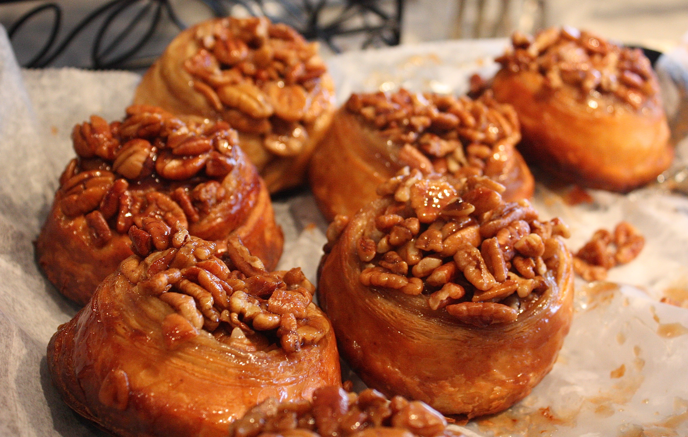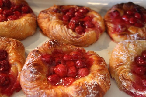 Pastries include flaky fruit, cheese, and lemon danish; buttery croissants (plain, chocolate, ham and Swiss, spinach and feta, and a to-die-for almond); cinnamon rolls, pecan rolls, puff pastries, and more.