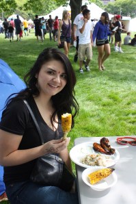 I attended the event with my daughter, Katie. We were tempted by food in most of the vendor booths but ended up dining mostly on Indian food: tandoori chicken for her, vegetables and rice for me, and spiced corn on the cob and cucumber salad for both of us.