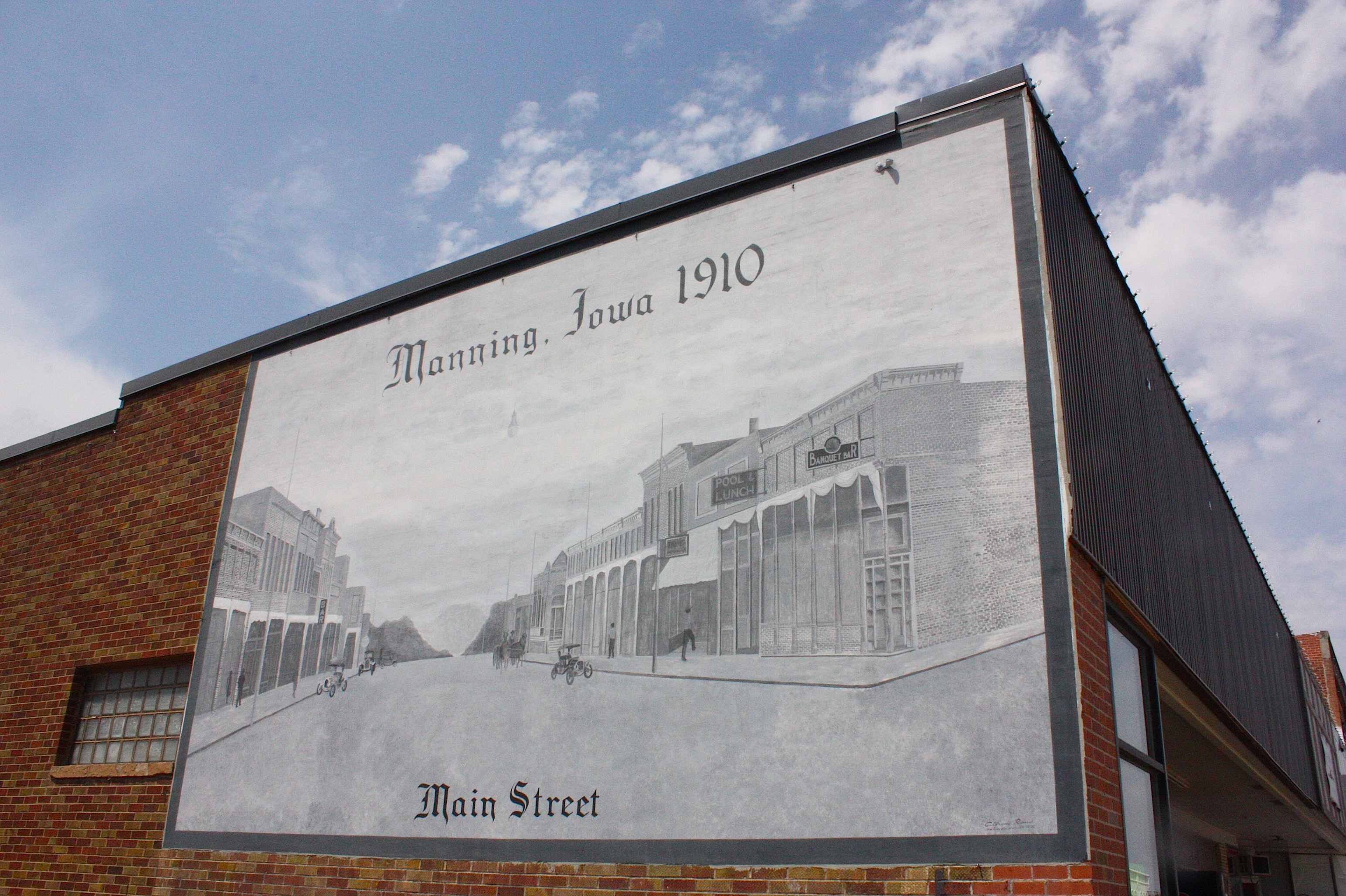 After I toured the historic sites, I headed into Manning’s downtown. Main Street is wide and tidy, with plenty of free parking and nice German architecture…but not much to do. I was there at 2:15 on a Saturday afternoon and couldn’t find anything to eat or any shops to poke around in. (The Travel Iowa website promised antiques stores, but I saw none.) I left the downtown area disappointed.