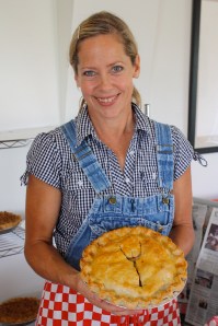 Yesterday was this summer’s opening day for the Pitchfork Pie Stand (who knew?) and the line was out the door. Beth’s pies looked wonderful, and she was selling about equal numbers of pies and books. “I can’t make pies fast enough!” she said.