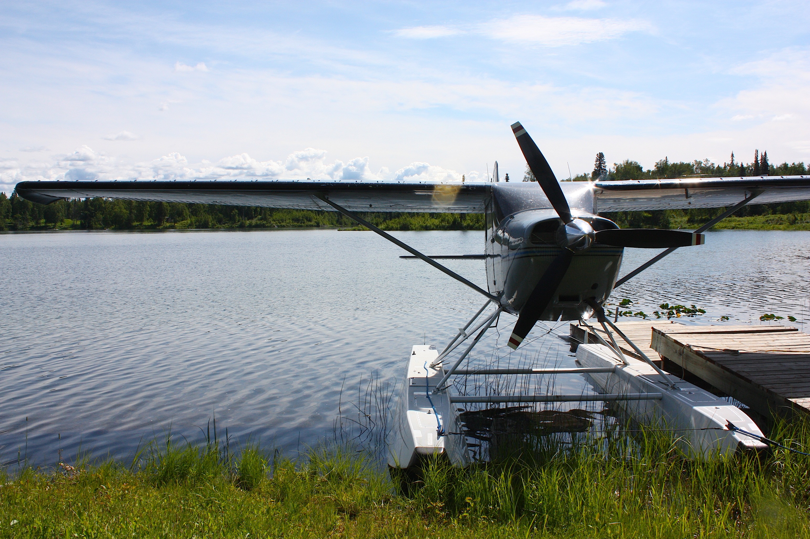 The floatplane ride did not frighten me, but a quick boat ride across the lake to visit one of Darrell’s neighbors did alarm me a bit, given that the boat didn’t really have sides and I don’t have any swimming skills (nor was I wearing a lifejacket). But it turned out OK, and the day was just breathtaking: sunny and warm.