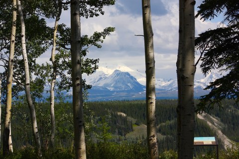 That didn’t make it any less cool for me. I always love rainy days, and after the heat we’d been having in Iowa, the 40s and 50s felt wonderful. We stopped a gazillion times to take pictures of glaciers and streams and overlooks. Stopped in Glenallen for gas and a quick bite of food out of the back of the Jeep.