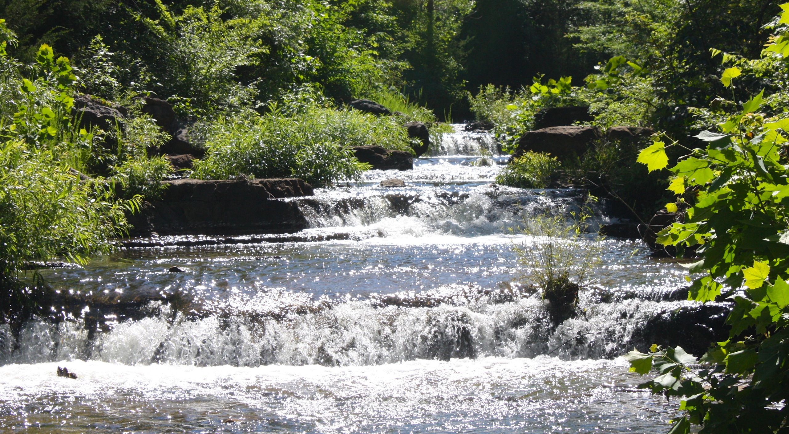 One morning Dave and I decided to attempt to find the hiking trails, and we located and hiked two of them: The Meadows Nature Trail and the Aspen Spur Nature Trail. Both were better than I expected, winding through some nicely wooded areas, along a creek, through a prairie, and near a horse farm framed by white fencing. One took you to a waterfall. We even saw a couple of turtles on the trail.