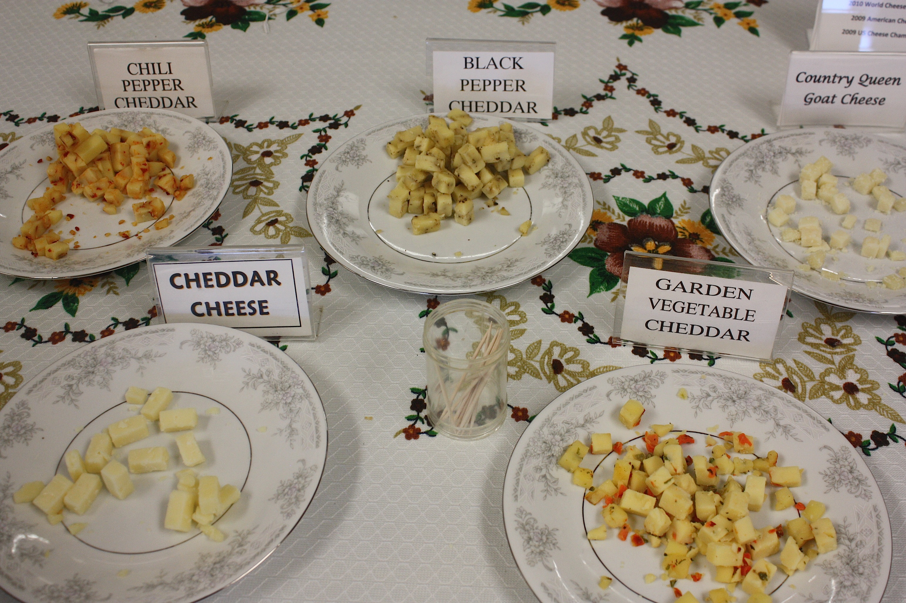 I took Hwy. 2 through Pulasky to Milton. The Milton Creamery is located right on the highway in a big, nondescript pre-fab building. Inside there were samples of about a dozen kinds of cheese curds (smoked, tomato-garlic, chive, chili pepper, pizza, dill) and a variety of cheeses: flavored cheddars, Colby, and the popular Prairie Breeze and Prairie Rose. I’ve heard about this cheese and was eager to try it. I tasted a lot of different ones and chose two bags of cheese curds and a chunk of Prairie Breeze.