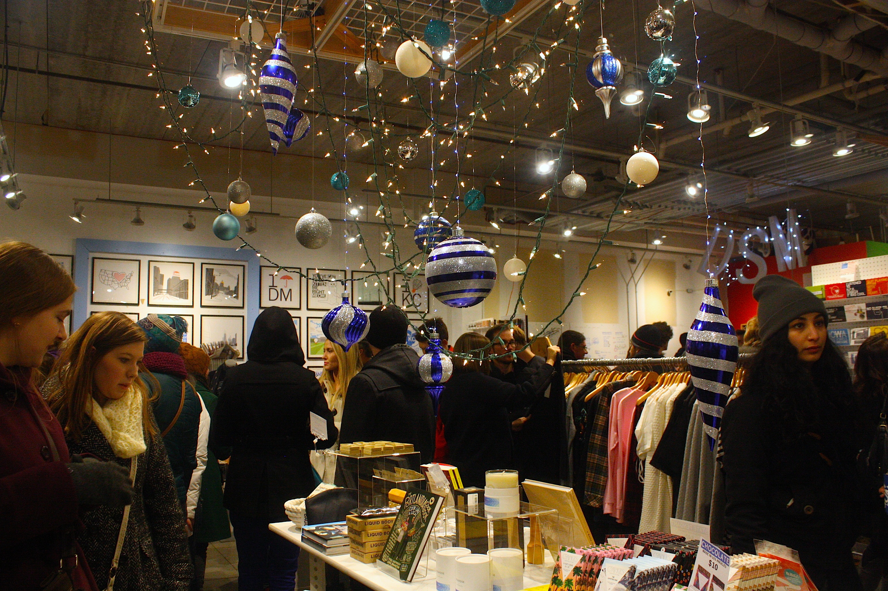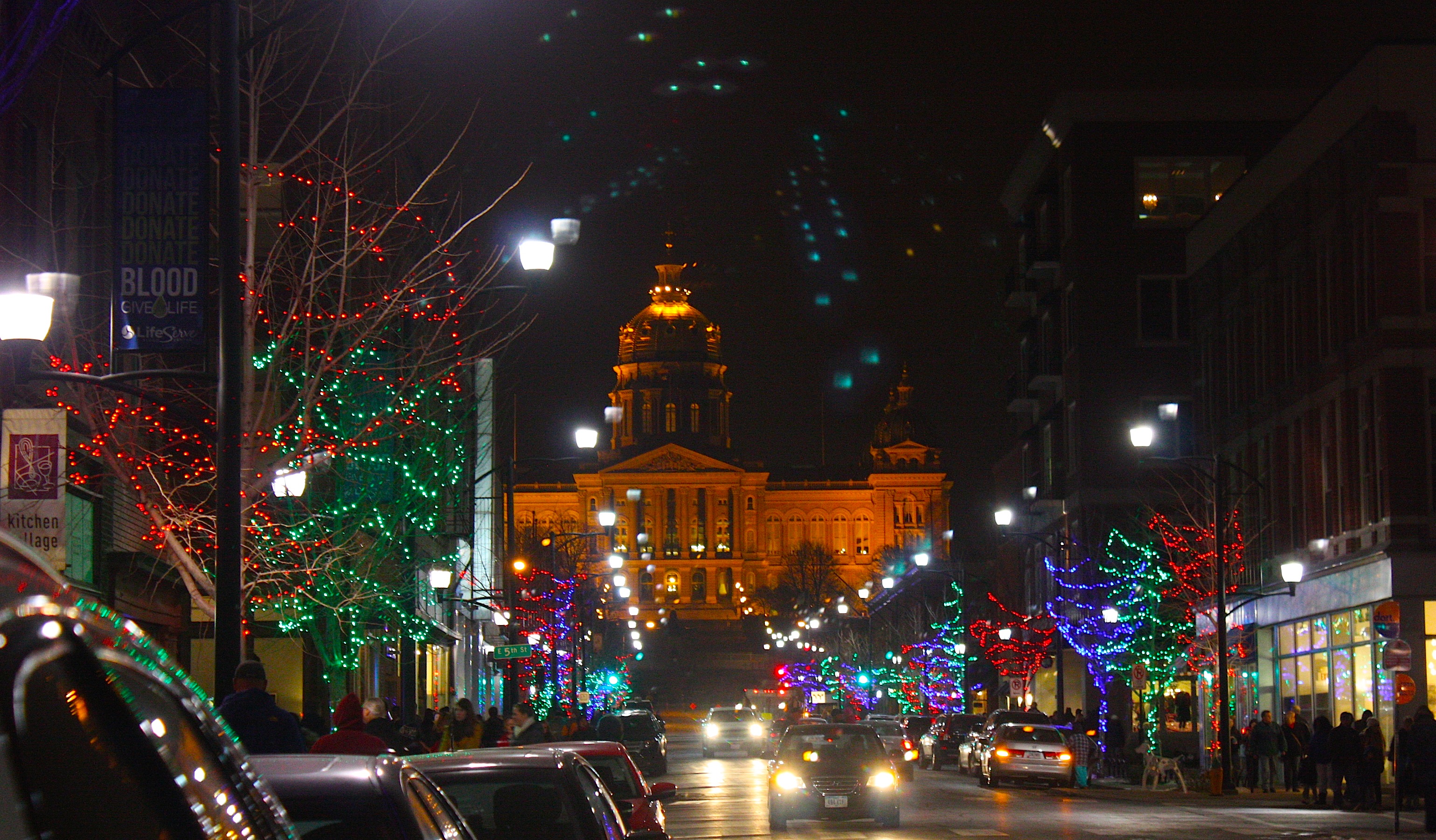 The holidays just got a little brighter in Des Moines! Last night’s Historic East Village Holiday Promenade was a sparkly, twinkly way to kick off the holiday shopping season. Even the weather cooperated — mostly. It was much warmer than it’s been here all week, and a few sprinkles didn’t seem to dampen spirits.