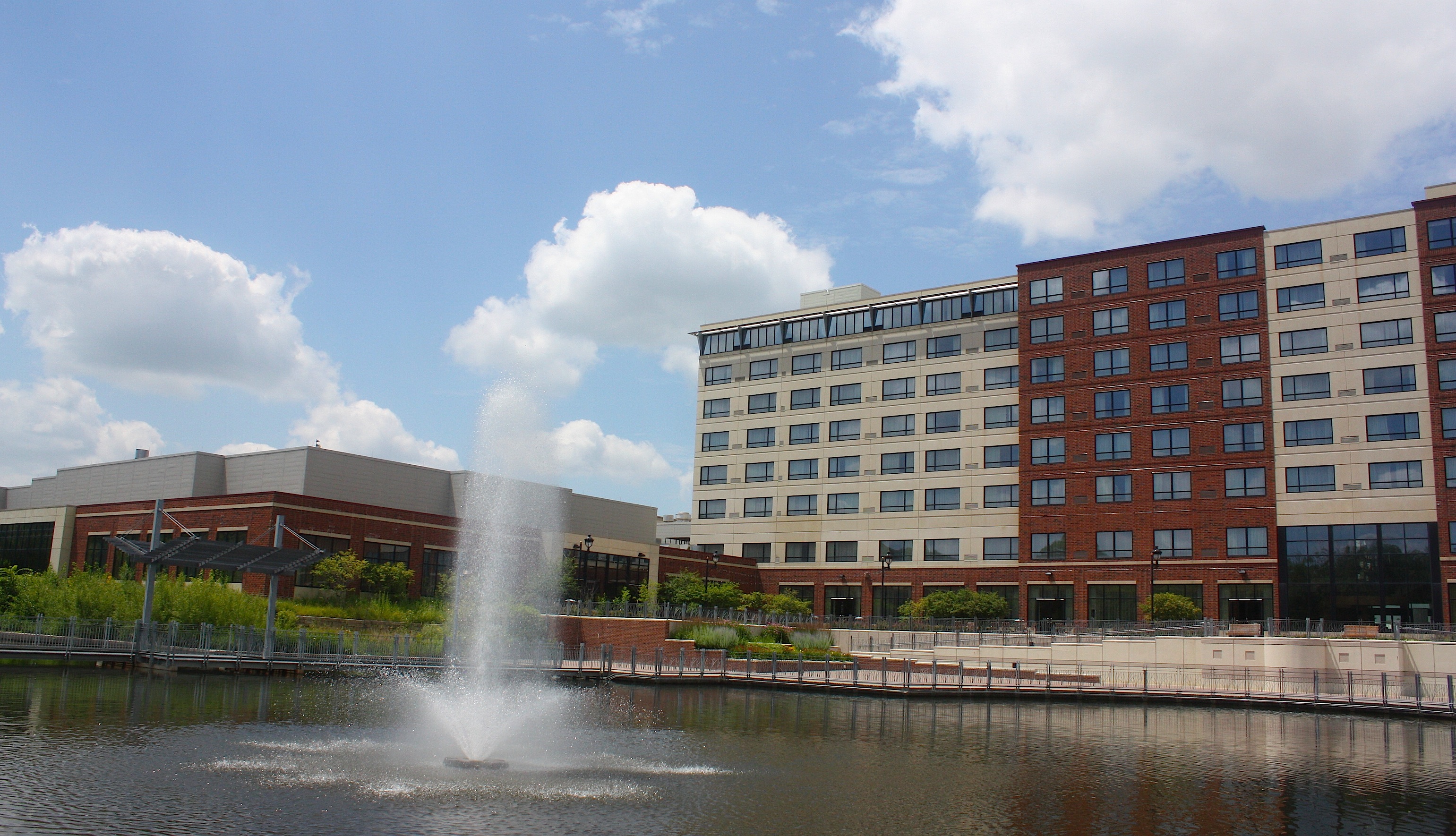 It takes a long time, and we’re never exactly sure where the bikes enter Coralville’s Iowa River Landing. And we have no idea where the cyclists are going to camp, because this place is nothing but concrete as far as the eye can see. But we’re here. So we explore.