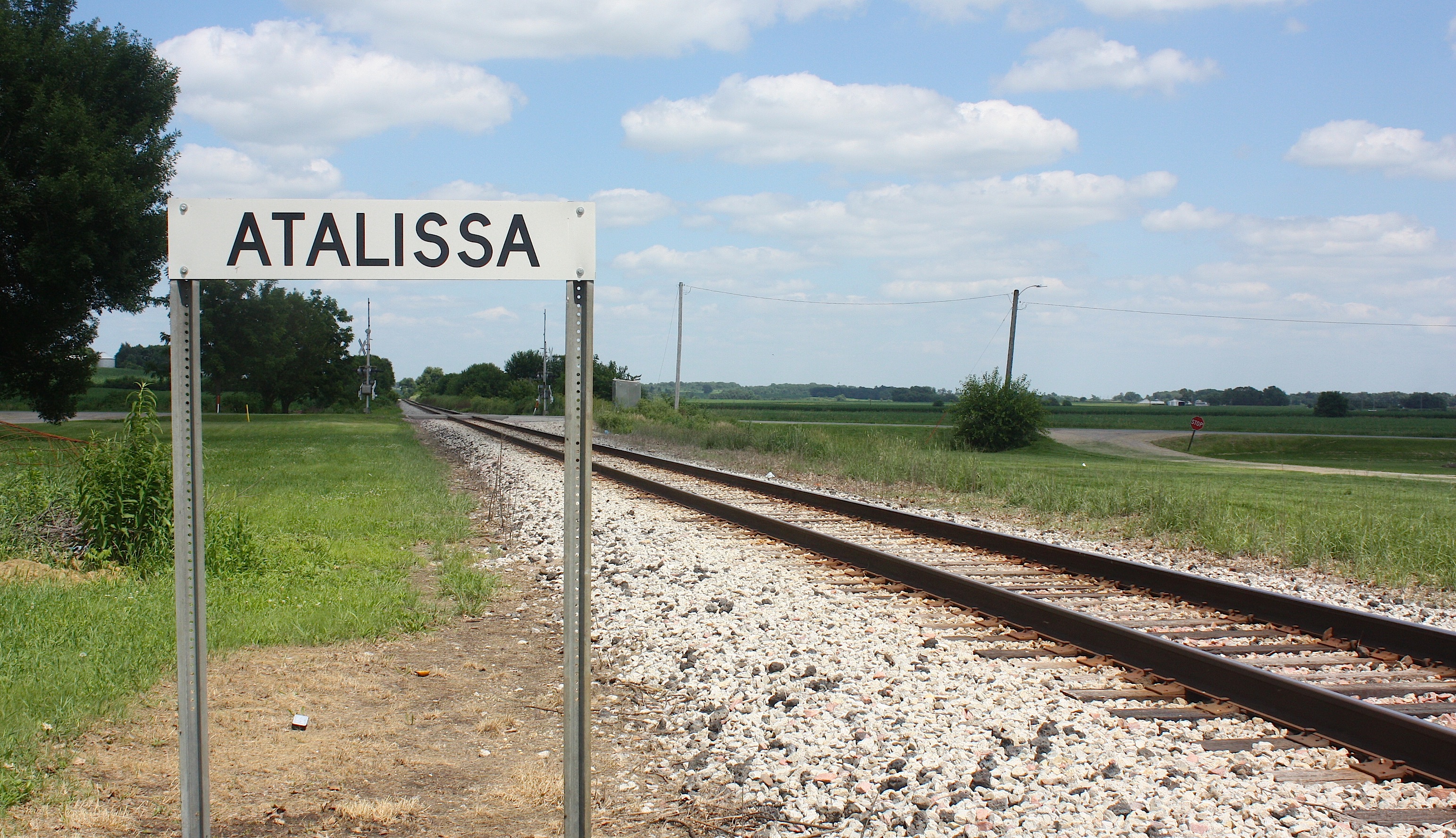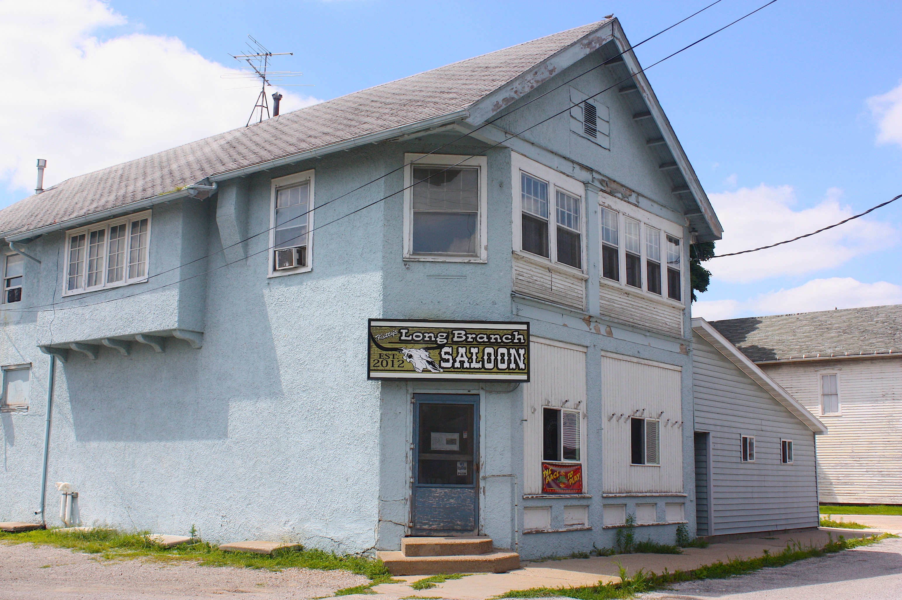 Just down the road is Atalissa (population 311). Going in, the only thing I know about Atalissa is all the negative press it got because of its own turkey processing plant here. Strangely, we never did see the plant. But we found the town had a number of enticing visuals, including the railroad tracks and the Longbranch Saloon.
