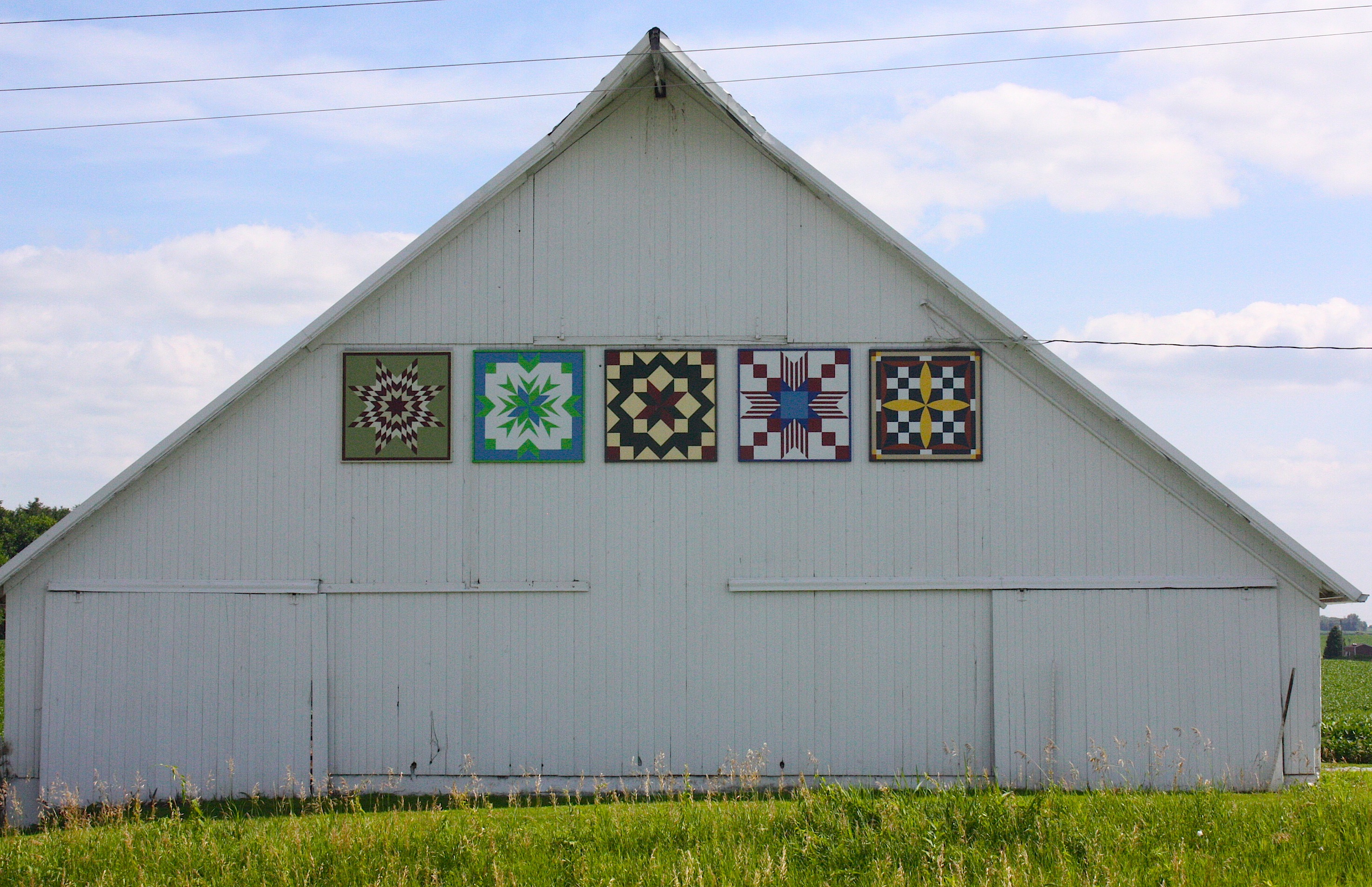 Our last stop before the end of the road in Davenport is Walcott (population 1,629). I’d characterize this tidy little town as a bedroom community for the Quad Cities, but with some character of its own. We met a gardener working to beautify a small plot in one of the city’s parks. There are some picturesque barn quilts on the way into town, and the downtown area has a historic VFW and a lovely bank, plus a large grain elevator.