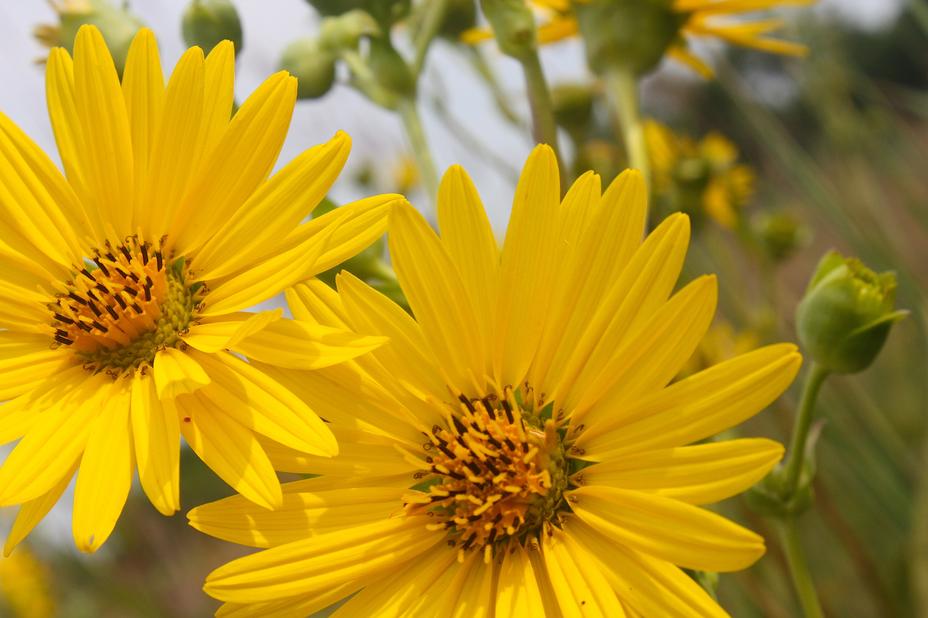 Your walk will take you through a variety of blooming plants and grasses. I wish I could tell you all the names, but I haven’t a clue. I just know that there are yellow and purple and white and pink and orange and gold flowers in every imaginable size and shape, framed by grasses in shades of green and brown and purple. Working hard the day I was visiting were hundreds of bumblebees and butterflies.