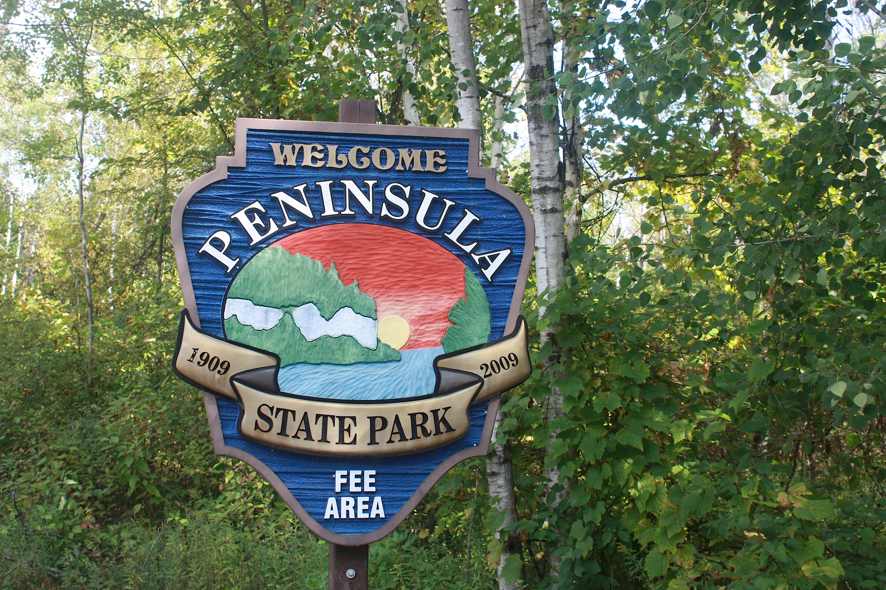 We visited one state park on the western shore of the peninsula: the 3,776-acre Peninsula State Park. This may be the premier state park in the system; it has a huge golf course, the aforementioned lighthouse, bike trails, camping, swimming beaches, a theater, a nature center, and 20 miles of hiking trails.