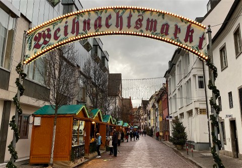 The next day, we visited Breisach, Germany (a university town with a bustling farmers’ market in addition to its holiday market, above). It rained again, but we made the best of it. The glühwein helped.