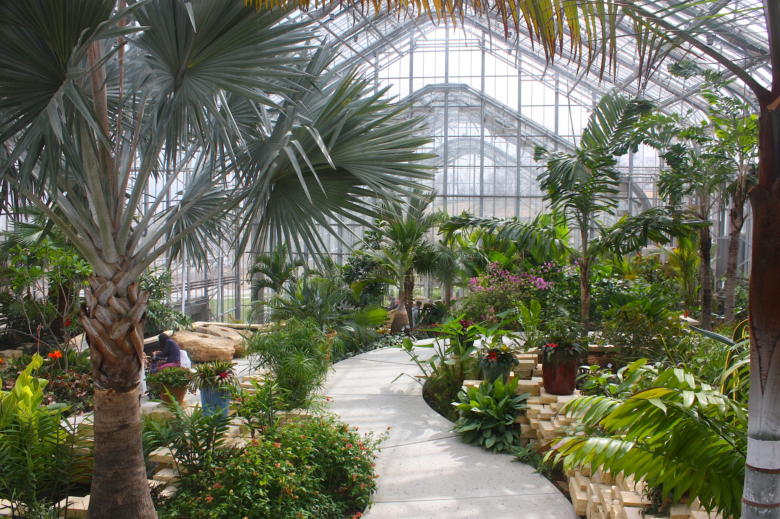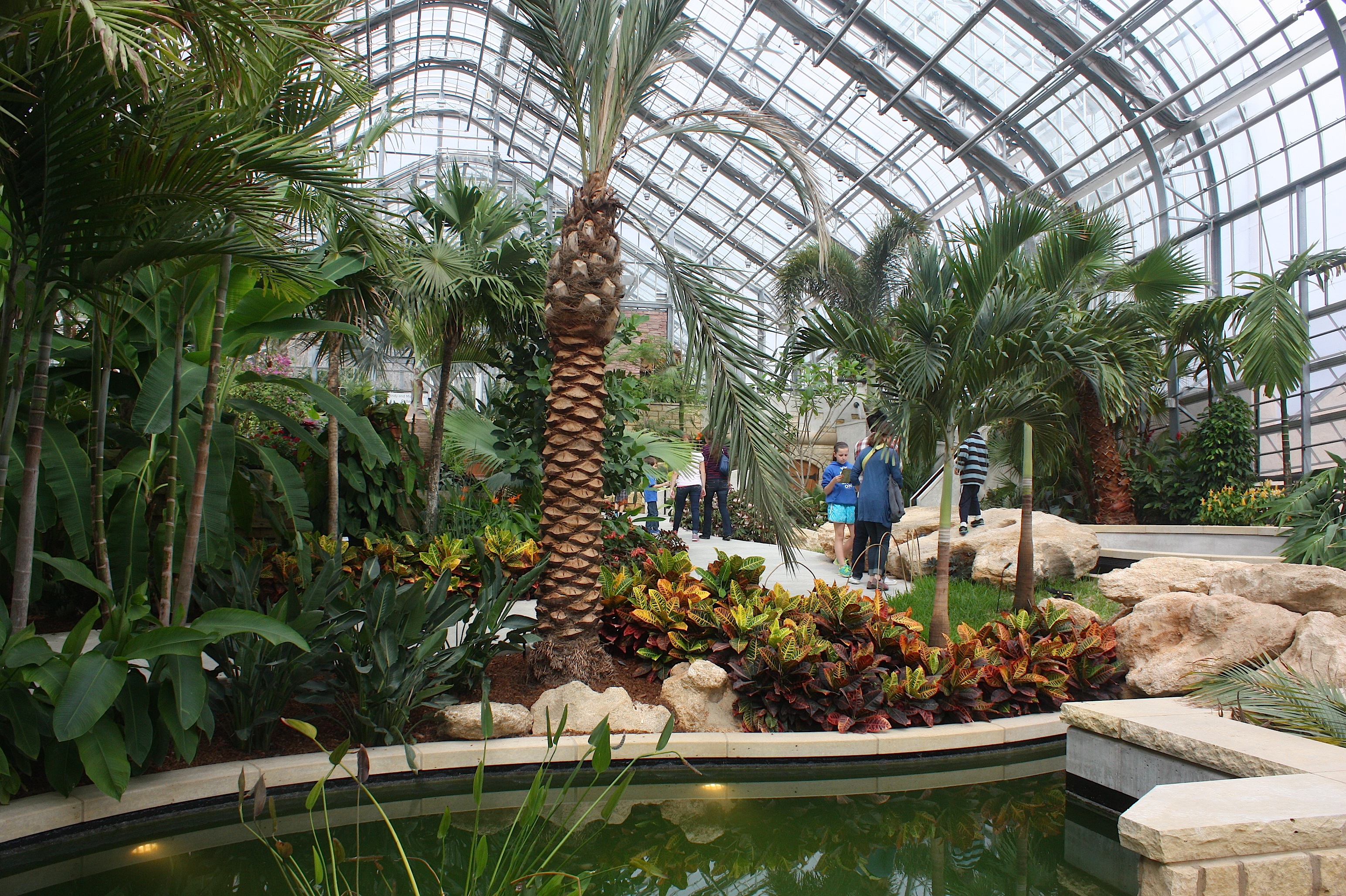 The 17,500-square-foot Marjorie K. Daugherty Conservatory opened last October and features panoramic views throughout its soaring glass walls. There’s a tropical garden, a temperate garden, and a garden that looks like you wish your backyard would look. There’s also a waterfall and a pond with water lilies and a gazillion enormous plants. It’s a real showplace, and it’s so great that it’s a four-season space.